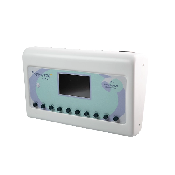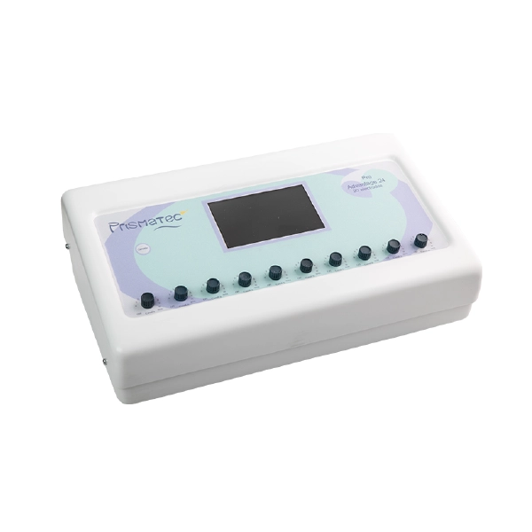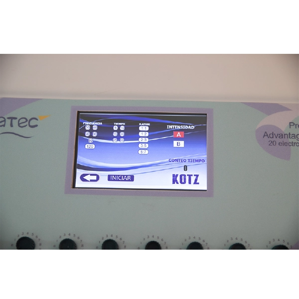 - Trabaja dos módulos, uno con 12 programas compuestos protocolizados, y el segundo con programación variable, lo que indica que es posible programar la frecuencia, intensidad, y cambio de polaridad, para todos los canales o por canal independiente.